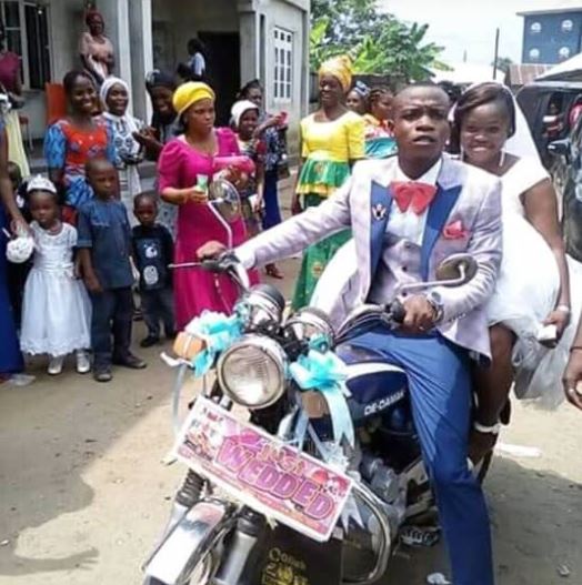 This not-so-rich-man carried his newly wedded bride on an okada as they got married, and the lady was happy about it.